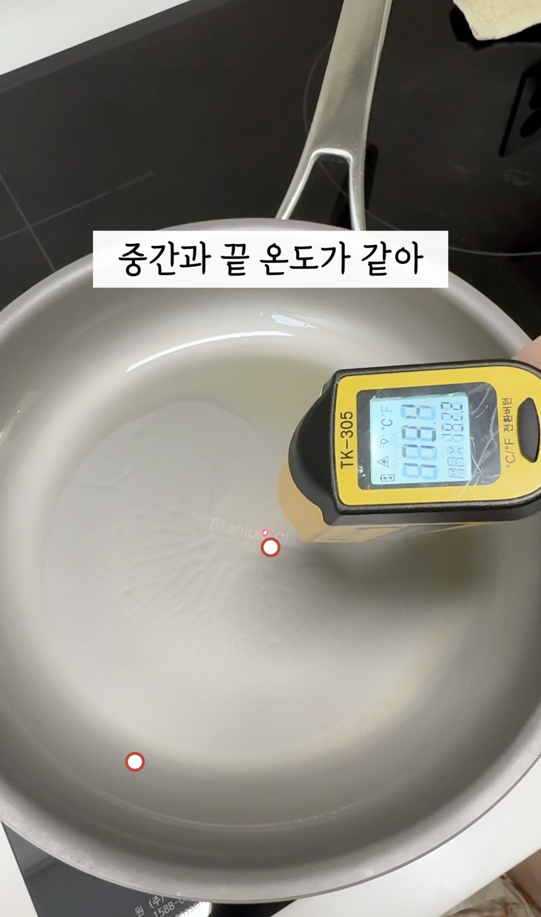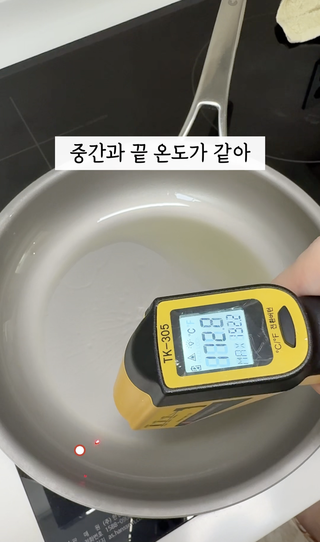 가운데와 겉부분 온도가 거의 같습니다. 그래서 부침개를 해도 골고루 익어요.
